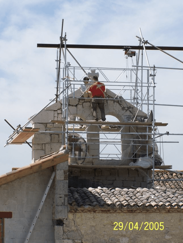 Création en neuf d’un mur clocher pour la chapelle dans le style des bâtiments existants.